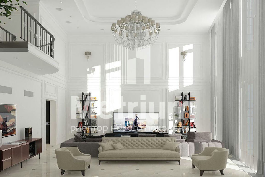 Высокие потолки 7,5 метра образуют второй свет в зоне гостиной и 3,75 метра высота потолков в комнатах.